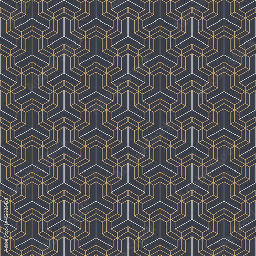 Abstract seamless pattern. Modern stylish texture. Linear style. Geometric tiles with triple hexagonal elements. Vector color background.