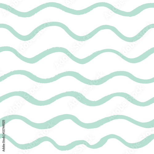 Abstract seamless pattern with hand drawn wavy blue lines, stripes, minimalistic design
