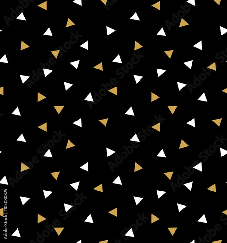 Abstract seamless pattern with triangles in gold and white on the dark gray background.