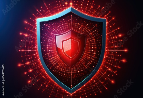 Abstract security concept with a red shield, illustrating the importance of encryption in cryptocurrency ecosystems