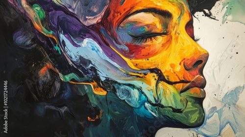 Abstract Self-Portrait Painting Revealing Inner Emotions, Artistic Expression and Introspection Generative AI