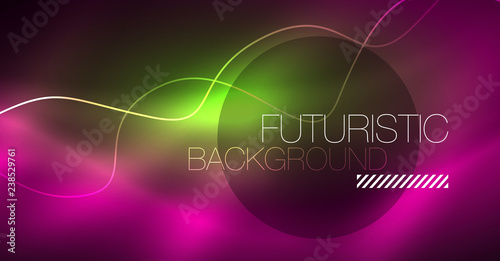 Abstract shiny glowinng color wave design element on dark background - science or technology concept