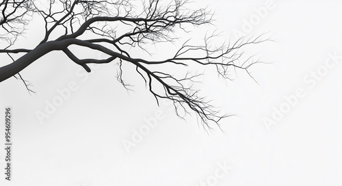 Abstract silhouette of black tree branches on a white background, soft-focus photography