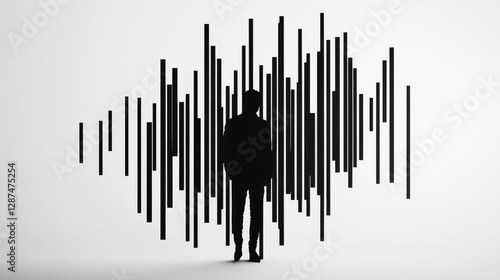 Abstract silhouette of person surrounded by vertical lines, creating dynamic visual effect