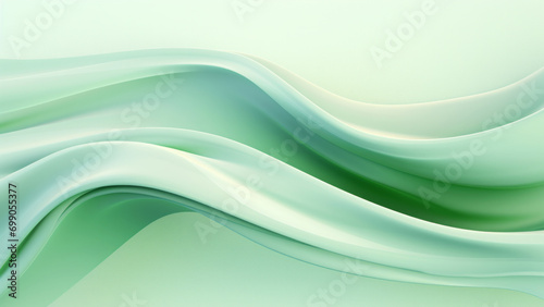 Abstract silk sage green waves design with smooth curves and soft shadows on clean modern background. Fluid gradient motion of dynamic lines on minimal backdrop