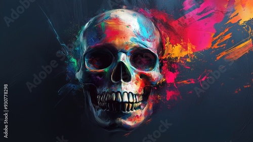 Abstract Skull with Flowing Paint Effects in Vivid Colors, Surreal and Modern Art Style