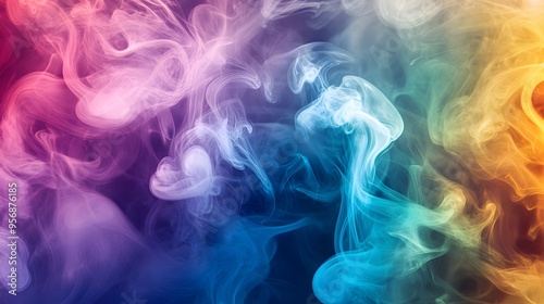 Abstract Smoke Art: Swirls of colorful smoke in mid-air, creating intricate patterns that blend and intertwine with each other.