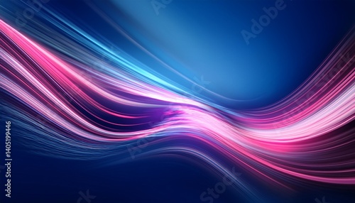 Abstract smooth fantasy motion blurred wave pink light trail on blue background