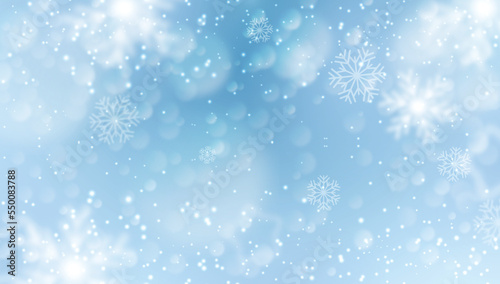 Abstract Snowflake background, christmas glitter background with stars. Festive glowing blurred texture.