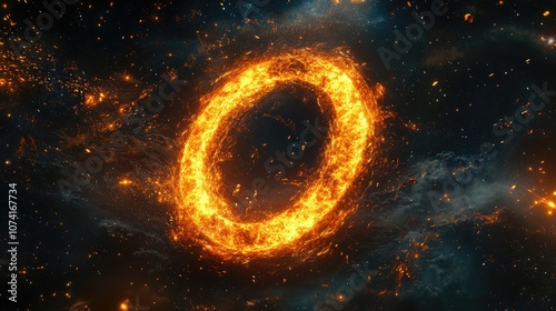Abstract space wallpaper featuring a form of the letter O with sparks of light and ample copy space presented in a 3D cartoon rendering Grunge abstract backdrop
