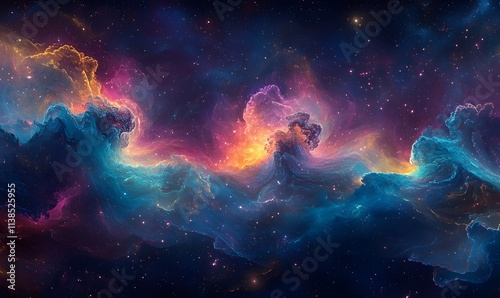 Abstract Space-Themed Wallpaper with Vibrant, Radiant Patterns and Cosmic Depth
