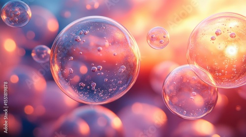 Abstract Spheres Floating in a Cosmic Nebula with Golden Hues and Soft Bokeh Effects