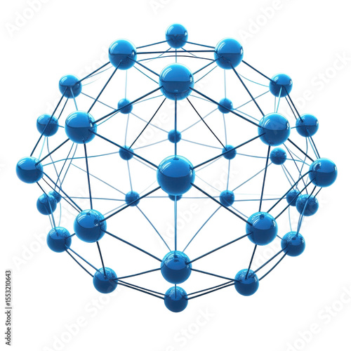 Abstract Spherical Structure Blue Balls Atom Molecule Connectivity Network on transparent background