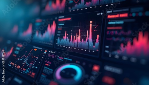 Abstract statistical big data, charts and analysis graphs, bright neon lights