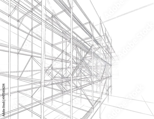 Abstract Steel Structure Engineering Design, Framework, Beams, Lines, Construction, Grid, Architectu