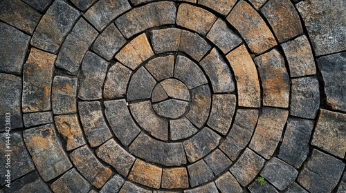 Abstract stone pavement design circular pattern grey brown natural texture background image old art wall rock floor decor style
