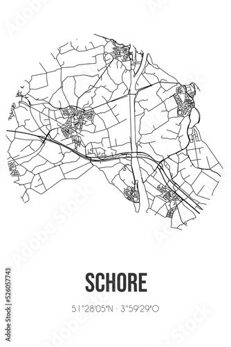 Abstract street map of Schore located in Zeeland municipality of Kapelle. City map with lines