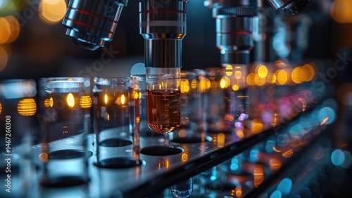 Abstract style of particle in pharmaceutical or chemical lab with science micro technology equipment for testing medicine in cell or atom level. Laboratory for biology and chemistry experiment AIG53.