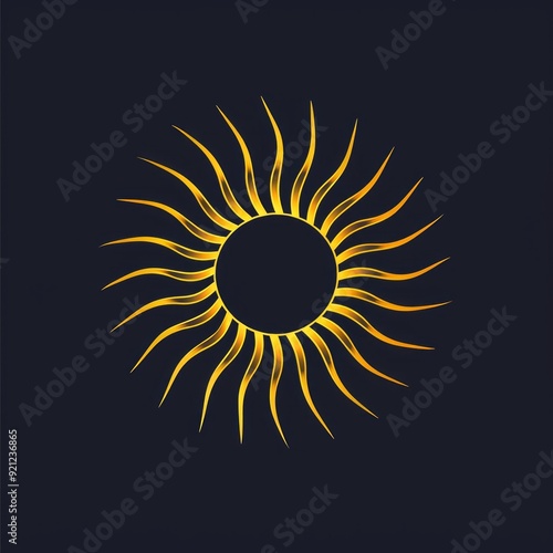Abstract Sun Logo Line. Yellow Sun Icon with Geometric Radial Rays of Sunburst isolated on Dark Background. Usable for Business and Nature Logos. Flat Vector Logo Design Template Element