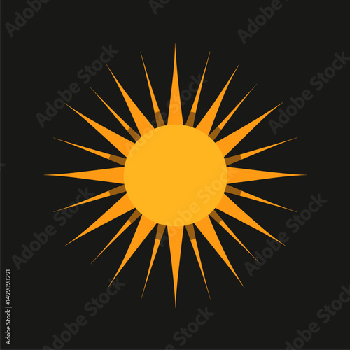 Abstract Sunburst Design Element: Bright Yellow Sun on Dark Background