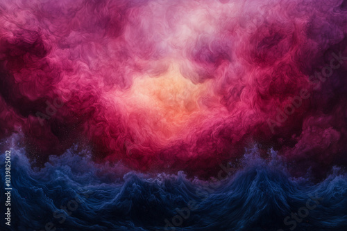 Abstract surrealistic waves of pink and purple smoke on a dark background