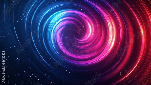 Abstract swirl of blue, pink, and red light on dark background.
