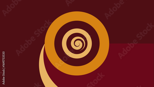 Abstract Swirl Pattern with Concentric Circles in Warm Tones on Deep Red Background spiral