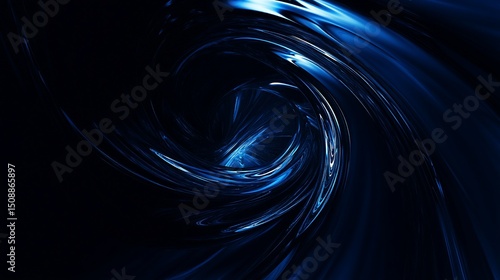 Abstract swirling blue lines create a sense of motion and depth against a dark background