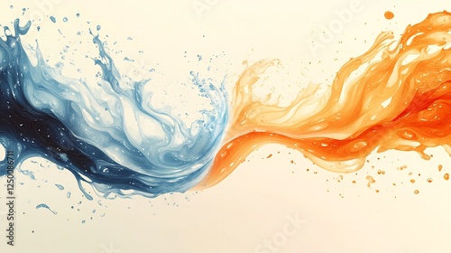 Abstract swirling blue orange paint splashes dynamic contrast. AI Generated