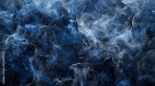 Abstract swirling blue smoke texture softly illuminated. AI Generated