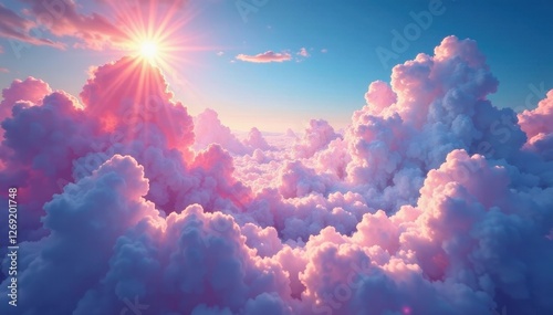Abstract swirling cloud formations, ethereal digital backdrop, celestial, blue, fog
