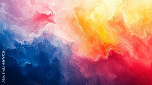 Abstract Swirling Color Pattern in Blue, Red, Yellow, and White
