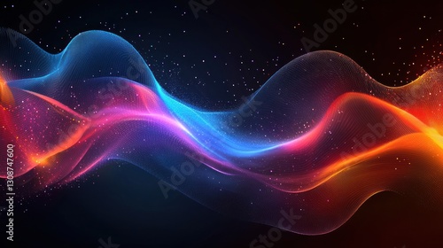 Abstract swirling colorful waves with flowing particle elements across the frame