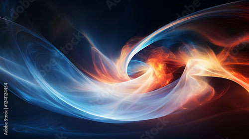 Abstract swirling energy, fire and ice fusion, dark background, graphic design element