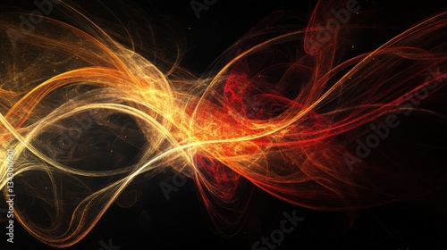 Abstract Swirling Flames in Orange and Red Against Black Background