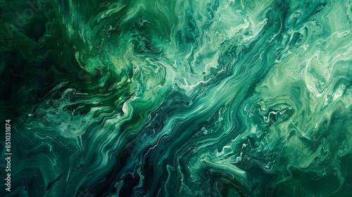 Abstract swirling jade-green hues resembling tranquil oasis