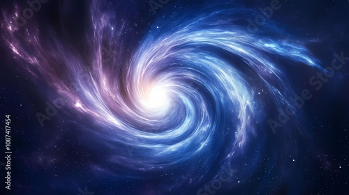 Abstract swirling nebula with vibrant blue and purple colors, a bright white core, and a sense of depth and wonder. Vivid Galaxy Vortex. Illustration