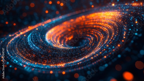 Abstract Swirling Particle Vortex with Blue and Orange Glows