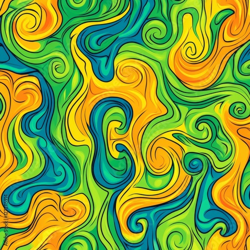 Abstract Swirling Pattern in Yellow, Green, and Blue