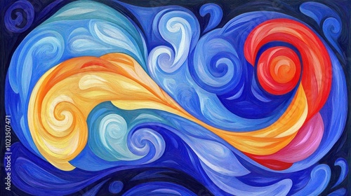 Abstract swirling patterns in vibrant colors create a dynamic visual flow.