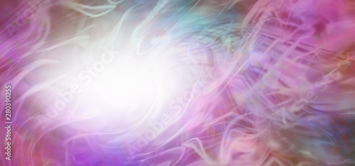 Abstract swirling purple pink ethereal special announcement background banner - multicoloured banner with a soft blur white oval on left for message