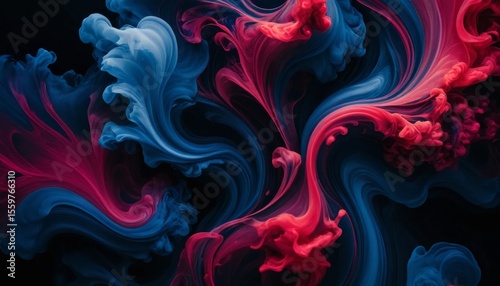 Abstract Swirling Red and Blue Ink in Water Fluid Art Dynamic Color Artistic Background