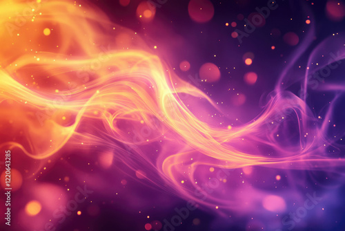 Abstract swirling smoke with vibrant colors and sparkling bokeh lights creating a magical, dreamy atmosphere.