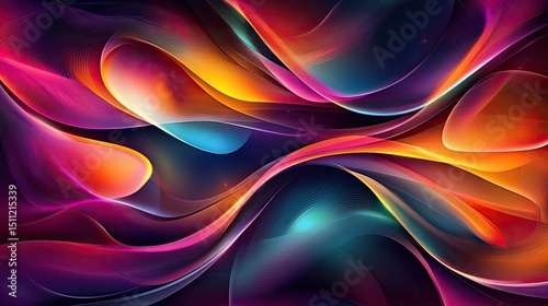 Abstract swirling vibrant colors, dark background, glowing, fluid shapes