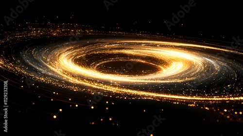 Abstract swirling vortex of golden particles and light trails in dark space, ai generation. Whirlpool. Illustration