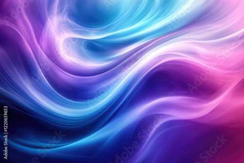 Abstract swirling waves of blue, purple, and pink hues create a dreamy, ethereal background.