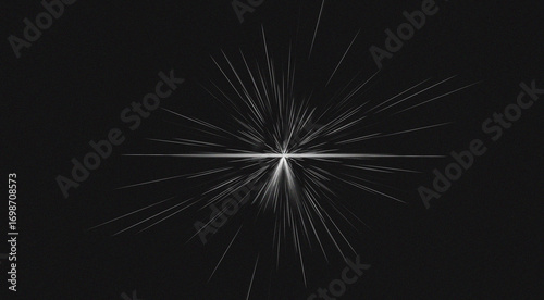 Abstract symmetrical light explosion emanating from a central bright point against a dark background
