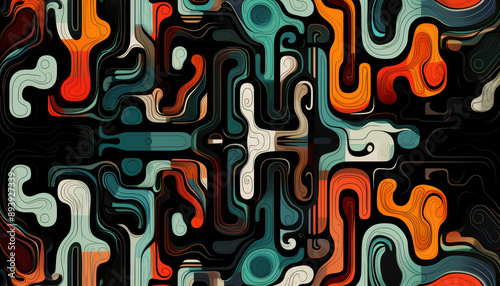 abstract symmetrical or ornament pattern of interlocking shapes and lines.