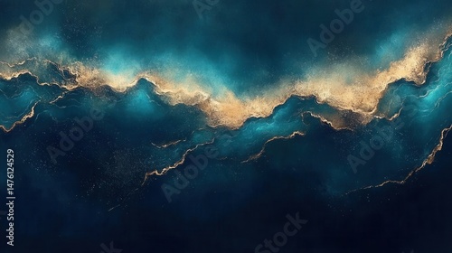 Abstract Teal and Gold Swirls Liquid Art Luxury Background