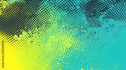 Abstract teal and lime halftone dots on clean background, retro inspired pop art design with minimalist texture ideal for graphic design, creative layouts, posters and advertising concepts